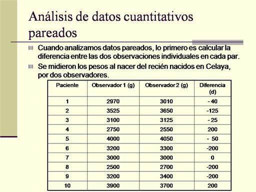 Observando las diferencias, comprobamos que la mayoría de ellas son negativas, sugiriendo que el observador dos tiende a registrar mayores pesos. Ahora la columna de las diferencias es nuestra muestra. |