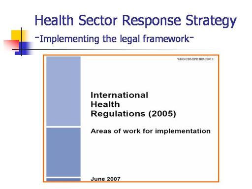 The entry into force of the International Health Regulations (2005), also referred to as "IHR(2005)“ on 15 June 2007 is a key milestone in public health. The IHR(2005) are the world's first legally binding agreement in the fight against public health emergencies of international concern such as those caused by new and re-emerging diseases with epidemic potential, as well as those associated with acute chemical or radionuclear events. The 2005 revision of the 1969 version of the IHR broadens the scope of notification from cases of cholera, plague and yellow fever to all events which may constitute public health emergencies of international concern and the reporting of other serious international health risks, irrespective of origin or source.
