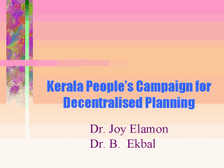 which has its office in Trivandrum. Dr. B. Ekbal is a Health Activist and Neurosurgeon. He was recently appointed Vice Chancellor: of the University of Kerala, in the capital city of Trivandrum. Kerala University is the premier institution of higher learning in Kerala, a state of India with 31 million inhabitants. |