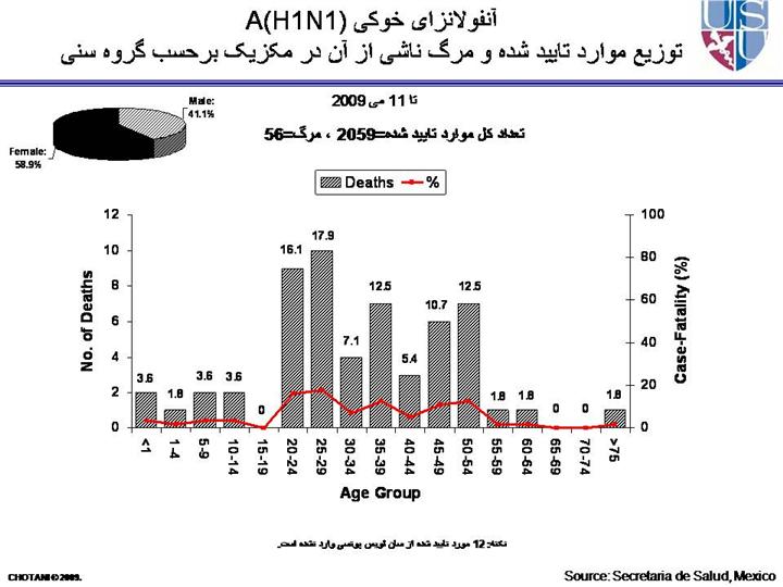بیشترین میزان کشندگی(Case-Fatality) که 87% بود در گروه سنی 20 تا 54 ساله دیده شد. |