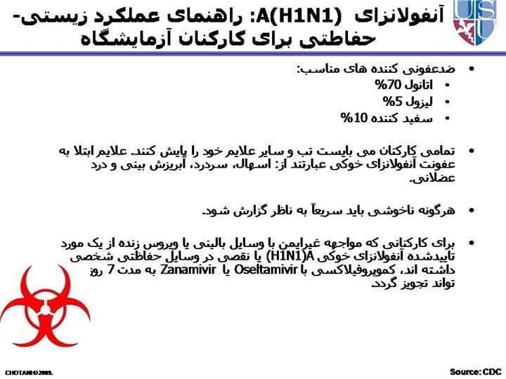 برای اطلاعات بیشتر، می توانید به سایت زیر مراجعه کنید: http://www.cdc.gov/OD/ohs/biosfty/bmbl5/bmbl5toc.htm |