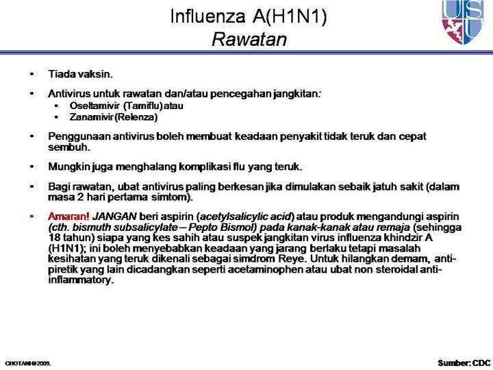 For more information about Reye’s syndrome, visit the National Institute of Health website at http://www.ninds.nih.gov/disorders/reyes_syndrome/reyes_syndrome.htm For information on homecare visit: http://www.cdc.gov/swineflu/guidance_homecare.htm |