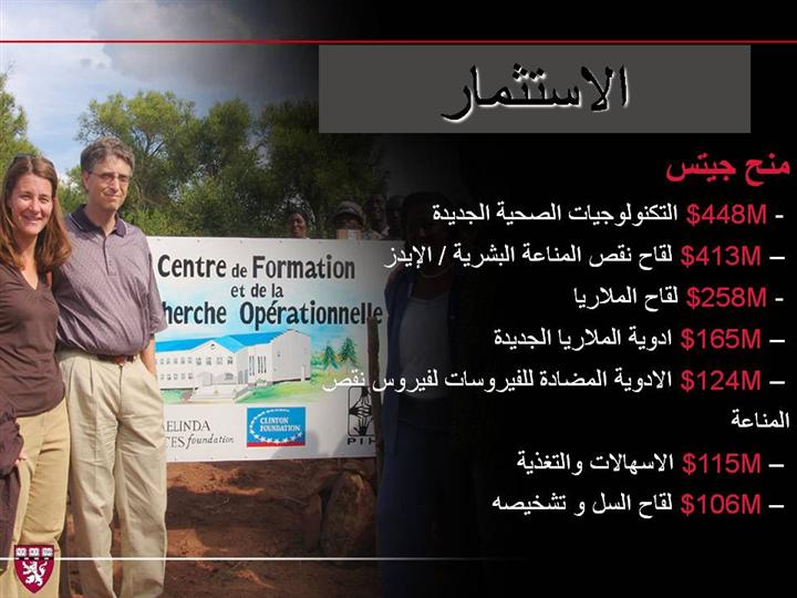BMG grants to Harvard $44.7 million to develop the program model for the control of MDR-TB $25 million to support AIDS Prevention in Nigeria (APIN) $2.28 million to support the development human papilloma virus (HPV) vaccines $7.57 million to develop a new paradigm for needle-free vaccination technology $18.7 million to develop valid, reliable and comparable measurements of population health |