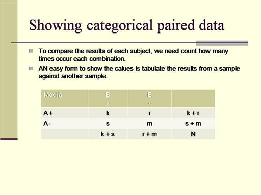 We signalize: • The number of times that both media are positive = k • The number of times that A is positive and B is negative = r • The number of times that a is negative and B is positive = s • The number of times that both media are negative = m |