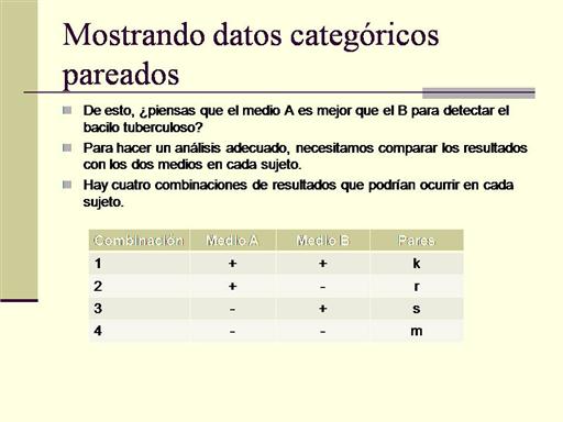 • El número de veces que ambos medios son positivos = k • El número de veces que A es positivo y B es negativo = r • El número de veces que A es negativo y B es positivo = s • El número de veces que ambos medios fueron negativos = m |