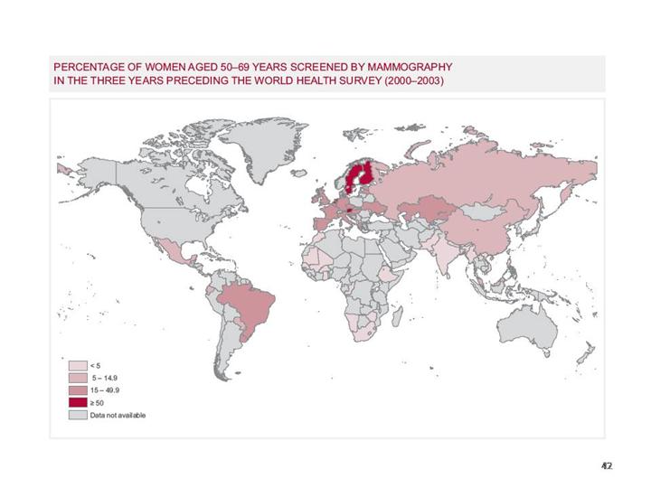Araştırmadaki 66 ülkenin bu yaş grubu kadınlarının %22’si son üç yılda mamografi yaptırmışlardır.