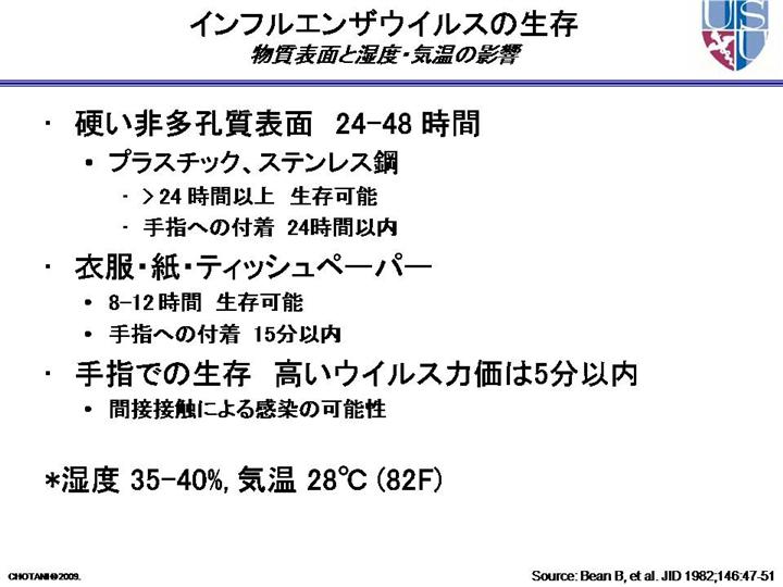 インフルエンザウイルスの生存について 参照 Loosli et al, 1943 |