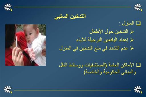 التدخين السلبي هو الدخان الذي يستنشقه الشخص غير المدخن دون إرادته، كما أنه يعرف ب: التدخين اللاإرادي التدخين البيئي التدخين القسري 90% من التلوث الكلي يكون داخل المباني أو الاماكن المغلقة 700 مليون طفل او نصف اطفال العالم يستنشقون هواء ملوث بدخان السجائر 200000 عامل يموتون سنوياً بسبب التعرض لدخان السجائر في أماكن عملهم