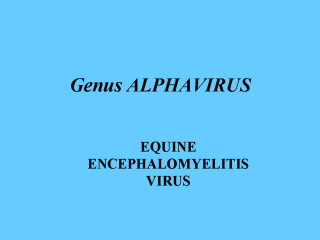 Equidae and man are end hosts; mosquitoes are vectors; reservoir hosts are birds, small rodents, or the leopard frog. 3 serotypes from Eastern USA, Western USA and Venezuela (termed EEE, WEE and VEE). They were part of the old arbovirus (Arthropod borne) family.
