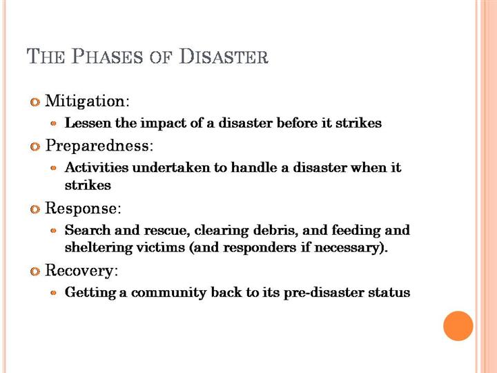Nursing can contribute to prevention, mitigation, preparedness, response, and recovery. Nurses work systematically by gathering data, planning according to priorities to target all who might benefit, working skillfully to promote health of the community, and evaluating the outcomes. |