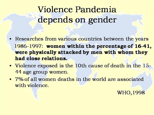 A gender-based violence is a pandemia today.  In every community in the world, society, country or region it can be found. The problem is really too large.