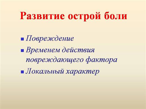 повреждающего фактора. Таким образом, острая боль является сенсорной