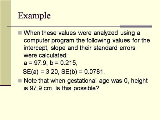 Usually a regression line should not be extended beyond the range of data where the line comes, and for clinical/biological data values of x=0 data for clinical / biological values of x 0 there is not significant value of y. |