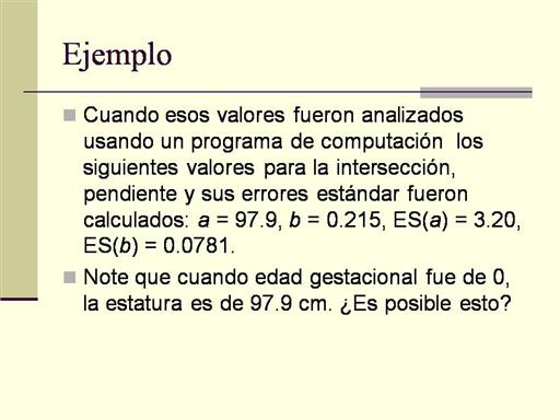 | Generalmente una línea de regresión no deberá ser extendida fuera del rango de los datos de donde viene la línea y, para datos clínico/biológicos, para valores 0 de x no hay valor significativo de y. |