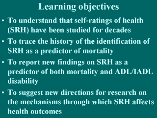 factors in health. The first study on self-rated health and mortality appeared in 1982,