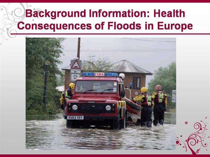 Floods are the most common natural disaster in Europe. In the recent years, Europe has witnessed some of the largest flooding events in its history. Indeed, 8 out of the 20 most important floods ever recorded in Europe (in terms of human impacts) occurred during the last decade. Recent flooding events include last summer’s major floods in United Kingdom and the Elbe and Danube river floods during the summer of 2002. Over the last 20 years, flood in Europe have affected over 7 million people and killed 1931 others. |