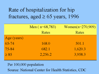 hospitalization for hip fracture differs by age and race for men and women. Women showed