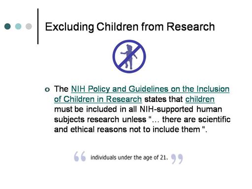 NIH Policy and Guidelines on the Inclusion of Children in Research
