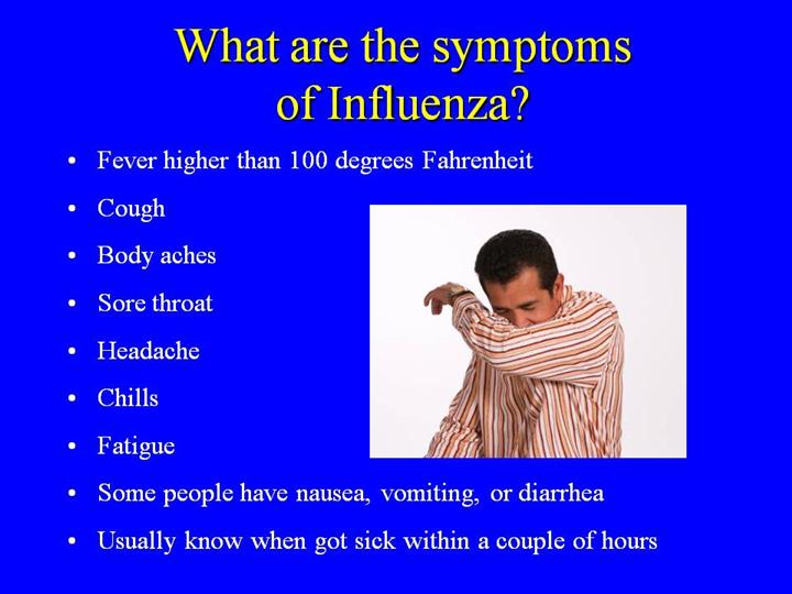 The symptoms of this new influenza A H1N1 virus in people are similar to the symptoms of regular human flu and include fever, cough, sore throat, body aches, headache, chills and fatigue. A significant number of people who have been infected with this virus also have reported diarrhea and vomiting.