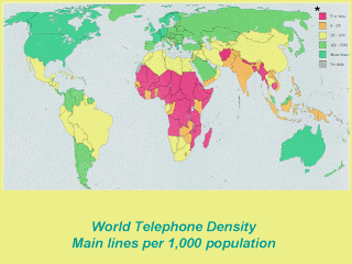 In most of Africa there is less than 10 telephone lines per 1,000 population.