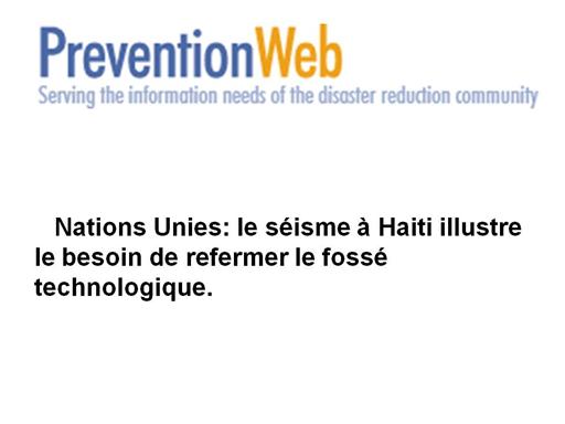 UN: Haiti quake shows need to close technology gap - Nations Unies: le séisme à Haiti illustre le besoin de refermer le fossé technologique