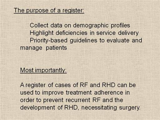 Preventing recurrent rheumatic fever: the role of register based programmes.