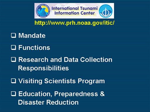 ITIC was given the general mandate of mitigating the effects of Tsunamis