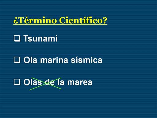 “El término tsunami (significa ola de puerto en Japonés) fue adoptado para uso general en 1963 en una conferencia científica internacional.