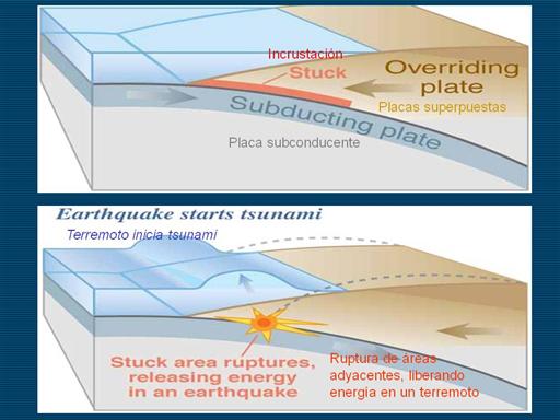 Cuando las placas se mueven subitamente en un área donde ellas están usualmente incrustadas, un terremoto sucede.