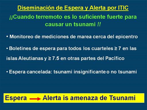 La mayor responsabilidad de diseminación de la ITWS es la espera y/o alerta de tsunami.