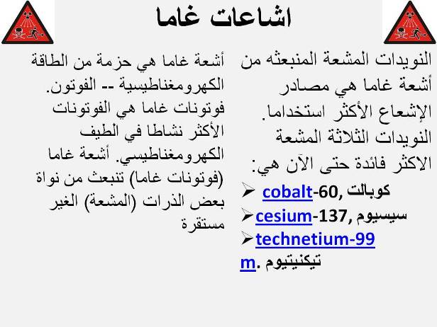 The properties of gamma radiation. Gamma radiation is very high-energy ionizing radiation. Gamma photons have about 10,000 times as much energy as the photons in the visible range of the electromagnetic spectrum. Gamma photons have no mass and no electrical charge--they are pure electromagnetic energy. Because of their high energy, gamma photons travel at the speed of light and can cover hundreds to thousands of meters in air before spending their energy. They can pass through many kinds of materials, including human tissue. Very dense materials, such as lead, are commonly used as shielding to slow or stop gamma photons. Their wave lengths are so short that they must be measured in nanometers, billionths of a meter. They range from 3/100ths to 3/1,000ths of a nanometer. Gamma rays and x-rays, like visible, infrared, and ultraviolet light, are part of the electromagnetic spectrum. While gamma rays and x-rays pose the same kind of hazard, they differ in their origin. Gamma rays originate in the nucleus. X-rays originate in the electron fields surrounding the nucleus or are machine-produced. Health Effects of Gamma Radiation Because of the gamma ray's penetrating power and ability to travel great distances, it is considered the primary hazard to the general population during most radiological emergencies. In fact, when the term "radiation sickness" is used to describe the effects of large exposures in short time periods, the most severe damage almost certainly results from gamma radiation. Protecting People from Gamma Radiation You need specialized equipment to detect gamma radiation. You cannot see, or feel radiation hitting your body. However, you should be familiar with radiation warning symbols. You can protect yourself by avoiding devices with this symbol, and not entering areas where the symbol is posted. In February of 2007, the United Nations introduced a new symbol to help reduce accidental exposure to large radioactive sources. The new icon is aimed at alerting anyone, anywhere to the potential dangers of being close to a large source of ionizing radiation.