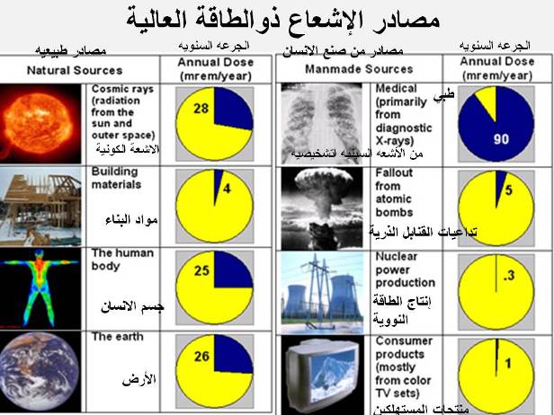 There are many sources of harmful, high energy radiation. Industrial radiographers are mainly concerned with exposure from x-ray generators and radioactive isotopes. It is important to understand that eighty percent of human exposure comes from natural sources such as outer space, rocks and soil, radon gas, and the human body. The remaining twenty percent comes from man-made radiation sources, such as those used in medical and dental diagnostic procedures. One source of natural radiation is cosmic radiation. The earth and all living things on it are constantly being bombarded by radiation from space. The sun and stars emits EM radiation of all wavelengths. Charged particles from the sun and stars interact with the earth’s atmosphere and magnetic field to produce a shower of radiation, typically beta and gamma radiation. The dose from cosmic radiation varies in different parts of the world due to differences in elevation and the effects of the earth’s magnetic field. Radioactive material is also found throughout nature. It occurs naturally in soil, water, plants and animals. The major isotopes of concern for terrestrial radiation are uranium and the decay products of uranium, such as thorium, radium, and radon. Low levels of uranium, thorium, and their decay products are found everywhere. Some of these materials are ingested with food and water, while others, such as radon, are inhaled. The dose from terrestrial sources varies in different parts of the world. Locations with higher concentrations of uranium and thorium in their soil have higher dose levels. All people also have radioactive isotopes, such as potassium-40 and carbon-14, inside their bodies. The variation in dose from one person to another is not as great as the variation in dose from cosmic and terrestrial sources. There are also a number of manmade radiation sources that present some exposure to the public. Some of these sources include tobacco, television sets, smoke detectors, combustible fuels, certain building materials, nuclear fuel for energy production, nuclear weapons, medical and dental X-rays, nuclear medicine, X-ray security systems and industrial radiography. By far, the most significant source of man-made radiation exposure to the average person is from medical procedures, such as diagnostic X-rays, nuclear medicine, and radiation therapy. http://www.ndt-ed.org/EducationResources/CommunityCollege/RadiationSafety/theory/sources.htm |