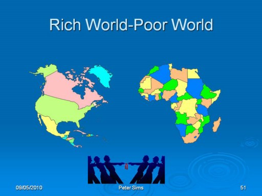 The poor, third world has a young population. Babies are surviving but growing up into communities where space, food and work become increasingly scarce. Their use of resources is much less, less is wasted and pollution is largely ignored and is more a local problem than an international one. They want to emulate the rich life style of the Americas but life chances are diminishing and the option of migrating out is difficult. A massive AIDS problem barely in control and killing the brightest and the best is leaving a society of young and old dependents. Things are better for 50 + years of aid and effort but there is still far to go…. |