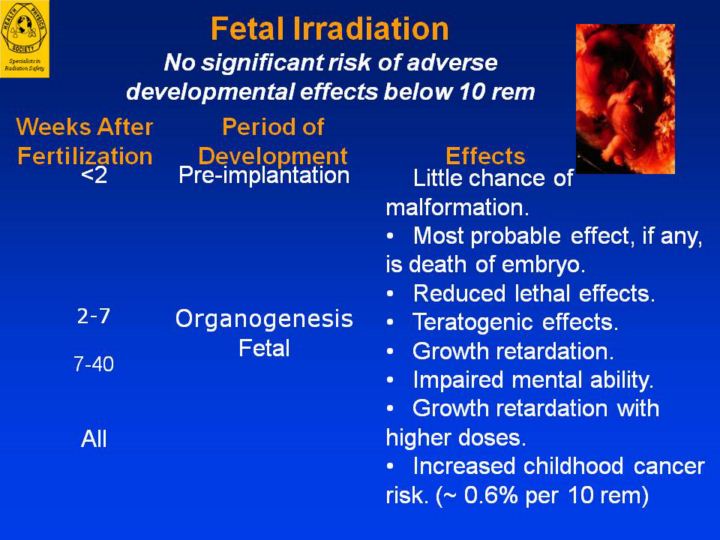 fetal doses between 10 and 50 rem, decisions regarding termination of