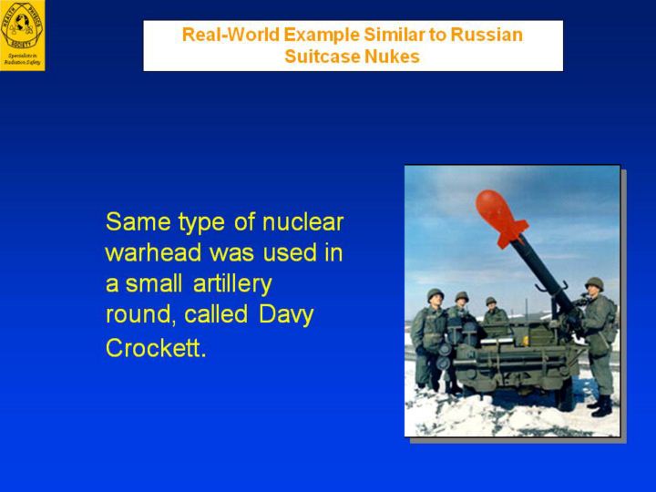 The effects from a Davy Crockett round would be expected to be similar to the effects from a backpack nuke or a terrorist-built weapon that fails to function properly.