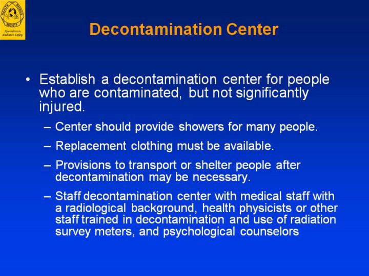 decontamination center should be established to monitor people who may
