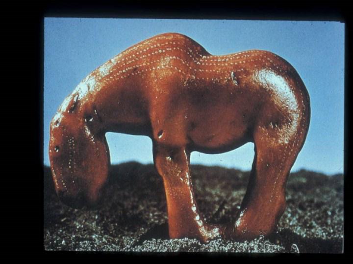 amber horse dating from circa 3,000 B.C. and is considered to be an amulet with magical properties for warding off sickness and evil spirits |