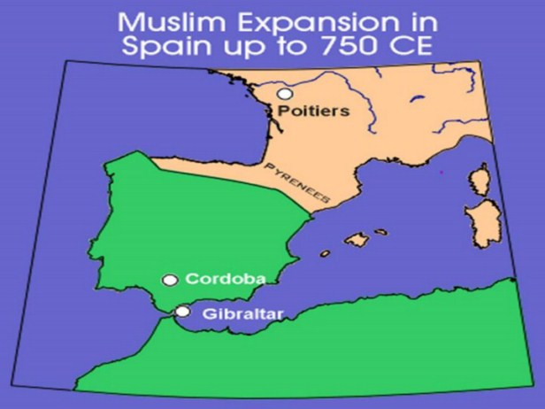 One of the major sources of contact took place in Southern Europe during the time that the Muslims occupied much of Spain. The Islamic revolution crossed the Mediterranean Sea at the Straits of Gibraltar, entering Spain in 711 AD. |