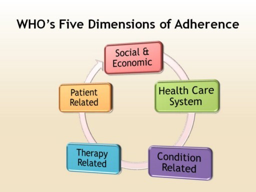 The World Health Organization (WHO) determined that the interplay of five sets of factors, termed dimensions, are important for older adults to adhere to medication regimens. We will discuss each of these dimensions and the most common barriers to medication adherence associated with that barrier. Reflecting on the Chronic Care Model, self-management support strategies to over-come barriers are suggested.