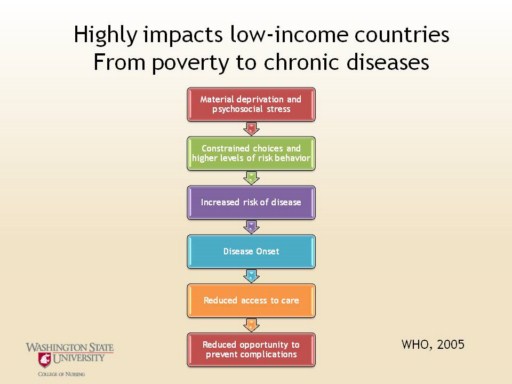 Of surprise to some is that chronic conditions are equally or more prevalent in low-income and middle-income countries and mortality rates are often higher for middle-aged people in these countries than in high-income countries (Strong, Mathers, Epping-Jordan, and Beaglehole, 2006).