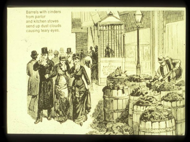 Street scene illustrating foul odors in late 19th century American cities. Even the wealthy could not escape the stench of urban America. |