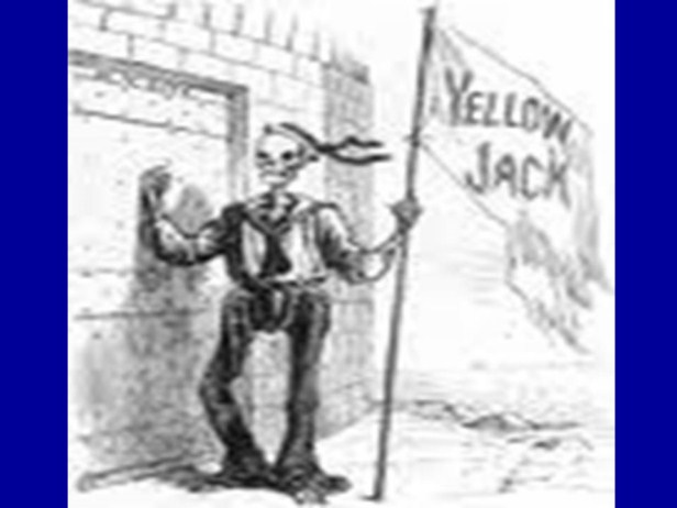 Cartoon of Yellow Jack figure symbolizing yellow fever in the 19th century in the United States. |