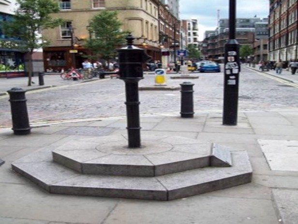 The Broad Street Pump where John Snow discovered that its impure water was causing hundreds of cholera deaths in London in the 1854. |