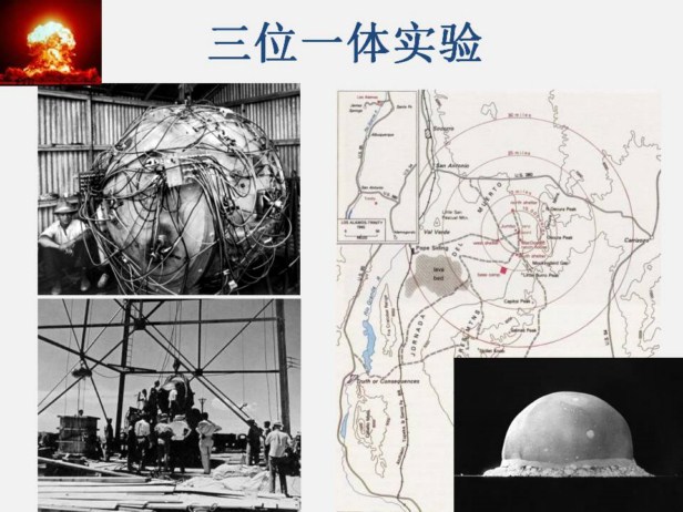 二战初,同盟国的科学家们担心纳粹德国会计划研制以核裂变为基础的武器。有组织的研究最早作为Tube Alloys计划的一部分在英国展开。1939年在美国,Lyman James Briggs名下的铀委员会投入一些小额的资金到铀武器的研究中。 在英国科学家的呼吁下,到1941年,这一项目移交到了较好的官员手上。这些科学家曾精确精计算过核裂变武器几年内就能被研制出来。1942年,这一项目得到了一个由上将 Leslie Groves领导的 军事政策委员会的支持,命名为曼哈顿计划。 这一计划有美国物理学家罗伯·欧本海默领导,聚集了当时最优秀的科学家(很多被驱逐出欧洲),结合美国工业的生产力,旨在在德国之前制造出以裂变为基础的爆炸性武器。英国和美国同意为此计划竭尽其资源和信息,但另一个联盟国斯大林领导的苏联并不知情。 一直到原子弹能进行测试时,对原子弹作用的质疑仍然存在。世界上从来没有过核爆炸,对其可释放能量的估计多种多样。洛斯阿拉莫斯的一些科学家仍暗自怀疑它是否有用。当时只有够一个原子弹用的武器等级的铀,而且对枪式设计的信心很足,所以1945年6月14日,大部分铀弹(小男孩)没有经过充分测试就开始运向太平洋。但是,既为了证实原子弹全新的内爆设计也为了收集核爆炸的数据,一个钚弹进行了测试,它看上去是致命的。很快,好几个钚弹投入生产,几个星期或几个月后就能使用了。所以当时决定对其中一个钚弹进行测试。 罗伯·欧本海默决定将此次测试命名为"Trinity",这个名字来源于约翰·邓恩的诗歌。测试的地点选在阿拉莫戈尔多的一个偏远角落,在洛斯阿拉莫斯向南210里的地方,爆炸的级别被定为死亡之旅。5月7日,爆炸点周围的精密仪器用大量常规炸药精心了测试。准备工作进行了整个5月、6月一直到7月初才完成。位于爆炸塔北、西、南各10000码的三个观察碉堡会测试裂变反应的各方面数据。科学家会尤其尽量测内爆的对称性和释放的能量值。另外还将进行损失估计,并有仪器记录火球的情况。由于并不完全相信这种气象状况能将射线引到上方大气层,军队以做好准备将居民撤离到周围区域。 7月12日,钚芯被一辆军用车运到测试区(右)。非原子部分13号12:01运向了测试区。13号那天,Gadget(外号)在麦当劳农场进行了最后的组装。到15号下午5点,钚弹已经完成了组装,被调到了100英尺高的塔顶。 测试前的最后几秒,所以的观看者都脚超爆炸点趴倒在地上等着测试开始。 1945年7月16日上午5:30整,核时代开始了。曼哈顿计划的工作人员们紧张的看着,测试设备在新墨西哥沙漠上空爆炸了,塔蒸发了,塔基周围的沥青变成了绿沙。几秒钟后迎来的是一巨大的冲击波和热浪,灼烧了整个沙漠。没有人能看到爆炸发出的射线,但是他们知道射线就在那儿,重达200多吨的钢制容器"Jumbo"竟然被炸开,尽管它所在的位置在地面零点的半里以外。橙黄色的火球四处飞散,比第一个窄些的第二个烟柱升起,变成了一个扁平的蘑菇形状。蘑菇云从此成为了原子能时代的一个视觉象征,作为一个权力和毁灭的标志深深地烙在人类的意识中。 爆炸发生40秒后,费米站起来,将实现准备好的纸条洒向原子风,根据纸条的偏斜度估计出这一测试释放的能力相当于一万吨三硝基甲苯爆炸释放的能力。最后真正的计算结果是2万1千吨,比费米用他的实验估算的值高两倍还多,是大部分洛斯阿拉莫斯的科学家预测的四倍。 第二天,斯廷森得知八月初铀原子弹就可以就绪后,和丘吉尔仔细讨论了格罗夫斯的报告。丘吉尔很高兴,他说它现在明白为什么杜鲁门之前对斯大林那么强硬了,尤其杜鲁门反对苏联对东欧和德国的态度打算。丘吉尔高速杜鲁门,原子弹可以无需进攻,也不需要苏联军队的帮助,就可以让日本投降。丘吉尔建议杜鲁门继续对斯大林采取强硬态度。杜鲁门和他的顾问们都同意丘吉尔的观点。Trinity测试的成功更坚定了杜鲁门的决心,他拒绝了斯大林让美国在土耳其和地中海问题上让步的要求。 6月24日,杜鲁门在此会见了斯廷森。斯廷森告诉杜鲁门,马歇尔不在需要苏联的帮助,他还向杜鲁门简单介绍了最新原子弹的情况。铀原子弹最早8月1日可以就绪,最晚8月10日一定能完成。钚武器8月6日也可以完成。斯廷森继续向日本皇帝承诺些东西,但在给中国看过的草稿上其实根本没有提这些。现在杜鲁门必须决定是否应该将原子弹的消息告诉斯大林。杜鲁门不知道的是,斯大林早已经知道了这个消息。 Trinity测试的成功以为这两种原子弹未经测试但认为可靠的铀弹和刚经测试成功的钚弹现在都可以用来攻击日本了。8月6日,铀弹小男孩首先投到了广岛上空,三天后钚弹胖子投到了长崎上空。几天后,日本就投降了。 |