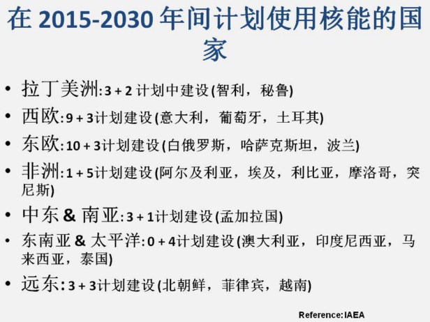 核能发电工业的未来 共有21的新国家正在考虑与2015-2030年之间使用和能源。 代阿布洛峡谷发电厂圣路易斯奥比斯波县,加利福尼亚,美国 到2007年,1996年2月7号投入使用的瓦次巴1号是美国最后一个商业核反应堆投入生产的。 这经常被引用,作为世界性的核力量逐步淘汰运动的证明。但是,甚至是在美国和全欧洲,对研究和核燃料循环的投资还在继续。一些核工业专家预测电力短缺,矿物燃料价格上涨,全球变暖和矿物燃料使用导致的重金属的排放,新技术如被动安全的工厂和全国能源安全将重新提出对核能发电站的需求。 根据世界核能协会,全球范围内在20世纪80年代,一个核反应堆平均每17天反应一次,到2015年这个速度可能增加到每5天一次。 许多国家都在积极地开发核能源,包括中国,印度和巴基斯坦,都在积极地开发迅速的能源和太阳能。韩国和美国开发的只有太阳能,南非和中国在开发不同的球床堆模组反应器(PBMR).一些欧盟成员国家在积极地开展核项目,而另一些成员国继续禁止核能的使用。日本正在积极地进行一个核建设项目,并与2005年将新装置投入生产。 在美国,2004年三大财团应美国能源部2010年核能项目的请求,得到对等资金----2005能源政策法案授权对多达6个核反应堆的贷款保证,授权和能源部在第五代超高温反应堆概念的基础上建一个新的反应堆,用来发电和制氢。到21世纪初,中国和印度对用核力量为迅速增长的经济有特别的兴趣---两个国家都在研发快中子增殖反应堆(另请参阅能源发展)。英国的能源政策认为未来有可能出现能源供应短缺,要靠新的核电站建设或超期使用现有的发电厂来填补。核电厂生产的一个可能障碍时世界上只有少数公司具备制造核反应设计必须的单模核反应堆压力容器。世界各地的公用事业公司都在提前几年提交这些容易的订单。另一些制造商在寻找其他的选择,包括自己制造部件或通过寻找相似的东西来代替这些容器。另一些解决方法是使用不需要单模制造的核反应堆压力容器如加拿大的高级重水铀反应堆和快速钠冷却反应堆。 这张图表显示的是60年后美国现有反应堆许可证期满不再生产,用煤或天然气代替核电站将产生的可能的二氧化碳排放量的上升。 注意:图表假设所以104个美国核电站许可证时间为60年 2009年世界核电产业情况报告表明,即使芬兰和法国各建一到两个核反应堆,中国再建20个,日本,韩国,东欧再添一些装置,未来20年世界范围内整体的趋势很可能是下降的。因为有10年或更久的前置时间,未来20年要保持或增加操作的核电站的数量是比较困难的。除非运作时间能大大提高增加到平均40年以上。这个不太可能实现因为现在世界上运行的核电站的平均寿命只有25年。 然而,中国计划建100多个发电厂,而美国几乎一半的反应堆的许可证已经被延长到60年,而且她正计划建30多个新反应堆。而且,美国]国家研究理事会和美国能源部已经开始了轻水反应堆可持续性的研究,希望它能把反应堆许可证的时间延至60年以后,再增加20年。前提是,安全性能得到保持,因为退休的反应堆非二氧化碳排放发电量的损失可能挑战美国能源安全,导致二氧化碳气体排放的增加,加剧能源供应和需求之间的不平衡。2008年,国际原子能机构(IAEA)预测到2030年核电装机容量可能翻两番,虽然那也不足以增加核能在发电中的比重。 |