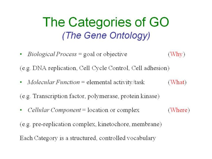 Gene Ontology is a collaboration between the fly (FlyBase), mouse (MGD) genome databases, and yeast (SGD). All three groups had started independent projects to produce controlled vocabularies for the biology of their organisms.