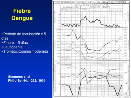 En 1929, voluntarios del ejército de EUA en las Filipinas fueron infectados serialmente por picaduras de Aedes aegypti  infectados con denguer-1 y luego estudiados cuidadosamente, en forma clínica. Vea Halstead SB Am J Trop Med Hyg 23:974-982, 1974.