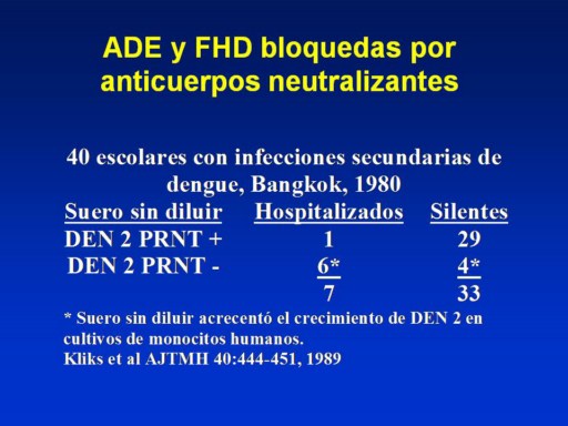 neutralizar o fomentaron el virus del dengue 2. Los niños con altos niveles