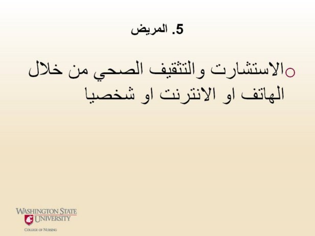 الاستشارت والتثقيف الصحي من خلال الهاتف, او الانترنت,او شخصيا من شأنه ان يساهم في تعزيز الالتزام بتناول الدواء. |