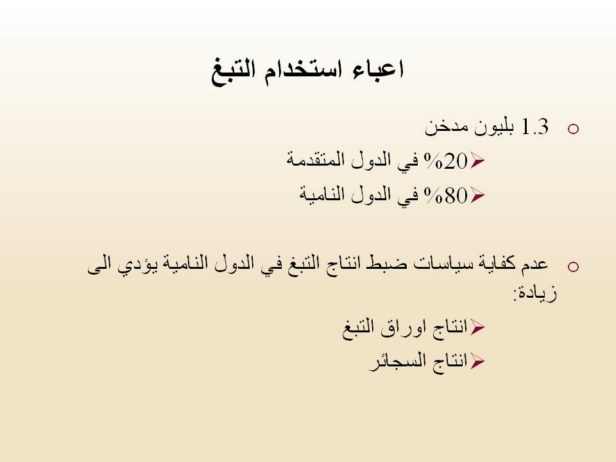 انتاج واستهلاك التبغ تناقص في الدول المتقدمة, على عكس الدول النامية.